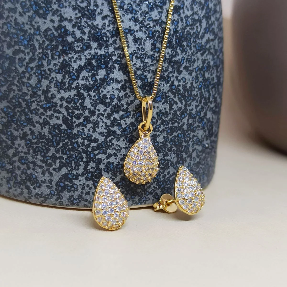 Conjunto Folheado a ouro de gota cravejada : 2291505 / : 3.8g Facebook X Pinterest WhatsApp R$ 130,00 UN R$ 130,00 UN Boleto Bancário R$ 130,00 UN Cartão de Crédito 2x R$ 65,00 - R$ 123,50 UN Pix (5% ) : - + : OK : Conjunto de brincos e gargantilha Folheado a ouro em formato de gota, cravejado com micro zircônias brancas. A corrente folheada a ouro é de tamanho médio, tendo 45cm de comprimento no modelo veneziana. O pingente e os brincos possuem 1,1cm de altura. o conjunto todo possui em torno de 3,8g. contando com a corrente, pingente, e os brincos. : Conjunto de brincos e gargantilha Folheado a ouro em formato de gota, cravejado com micro zircônias brancas. A corrente folheada a ouro é de tamanho médio, tendo 45cm de comprimento no modelo veneziana. O pingente e os brincos possuem 1,1cm de altura. o conjunto todo possui em torno de 3,8g. contando com a corrente, pingente, e os brincos. × : 1x R$ 130,00 : R$ 130,00 : 2x R$ 65,00 : R$ 130,00 ×